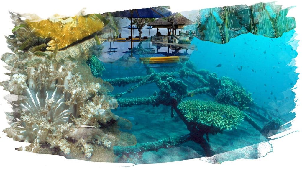 Zu Fuß zum vorgelagerten Korallenprojekt Biorock
