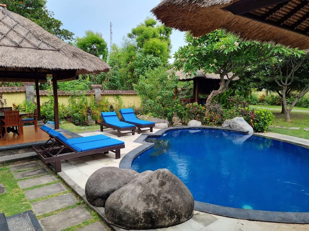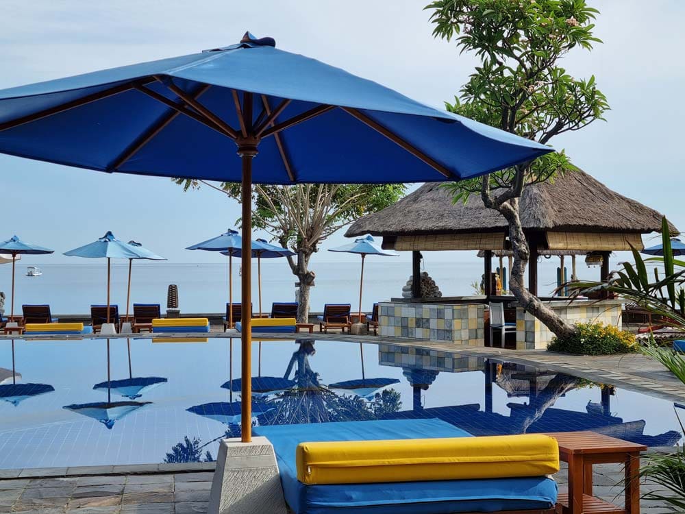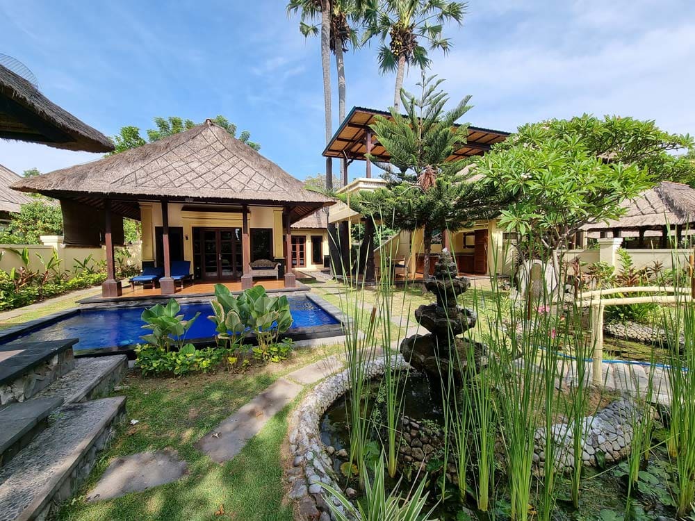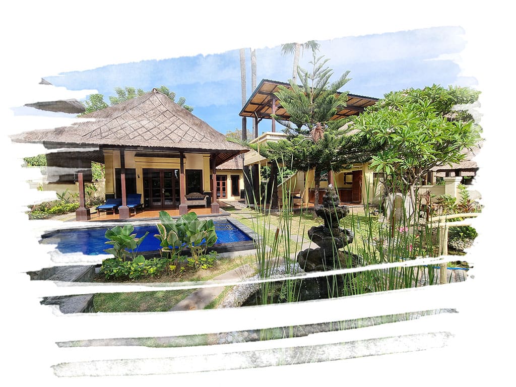 Das Amertha Bali Villas liegt am wunderschönen schwarzen Sandstrand in Pemuteran. In einem grossflächigen Garten bewachsen mit Palmen, Frangipani und vielen anderen tropischen Pfl anzen befinden sich mehr als ein Dutzend Villen, einige davon mit Meerblick. Jede Villa ist individuell geschnitten und mit viel Liebe zum Detail eingerichtet. Jede Villa verfügt über einen eigenen Pool, Aussendusche und Küche. Das resorteigene Restaurant mit Blick über Pool und Meer verwöhnt mit traditionellen Gerichten sowie Speisen aus China, Thailand und Europa. Das Prana SPA wartet mit traditionellen Massagen und diversen anderen Anwendungen.